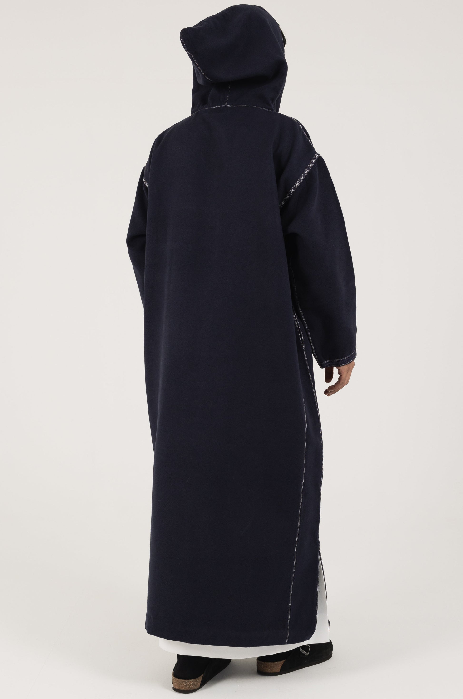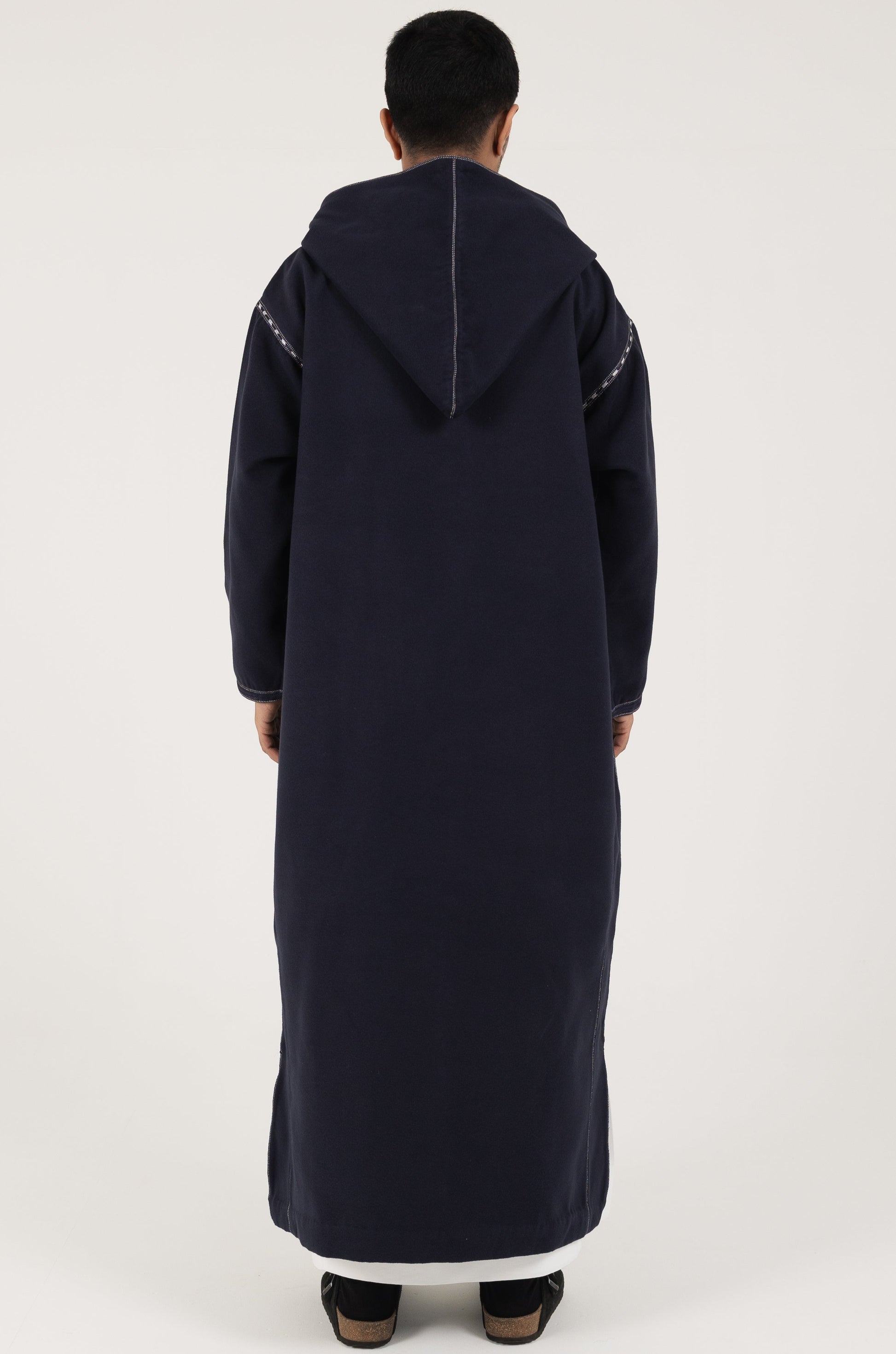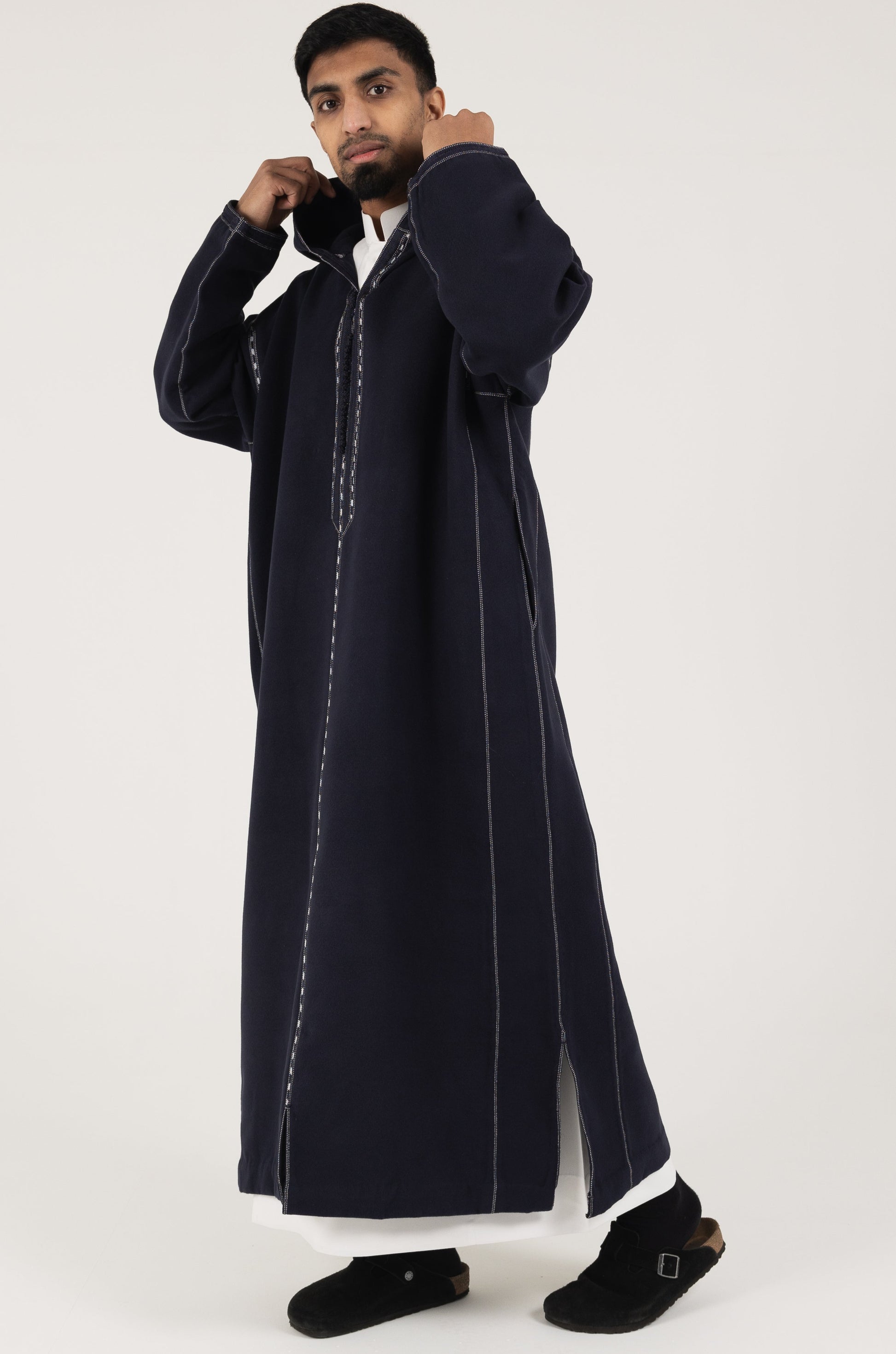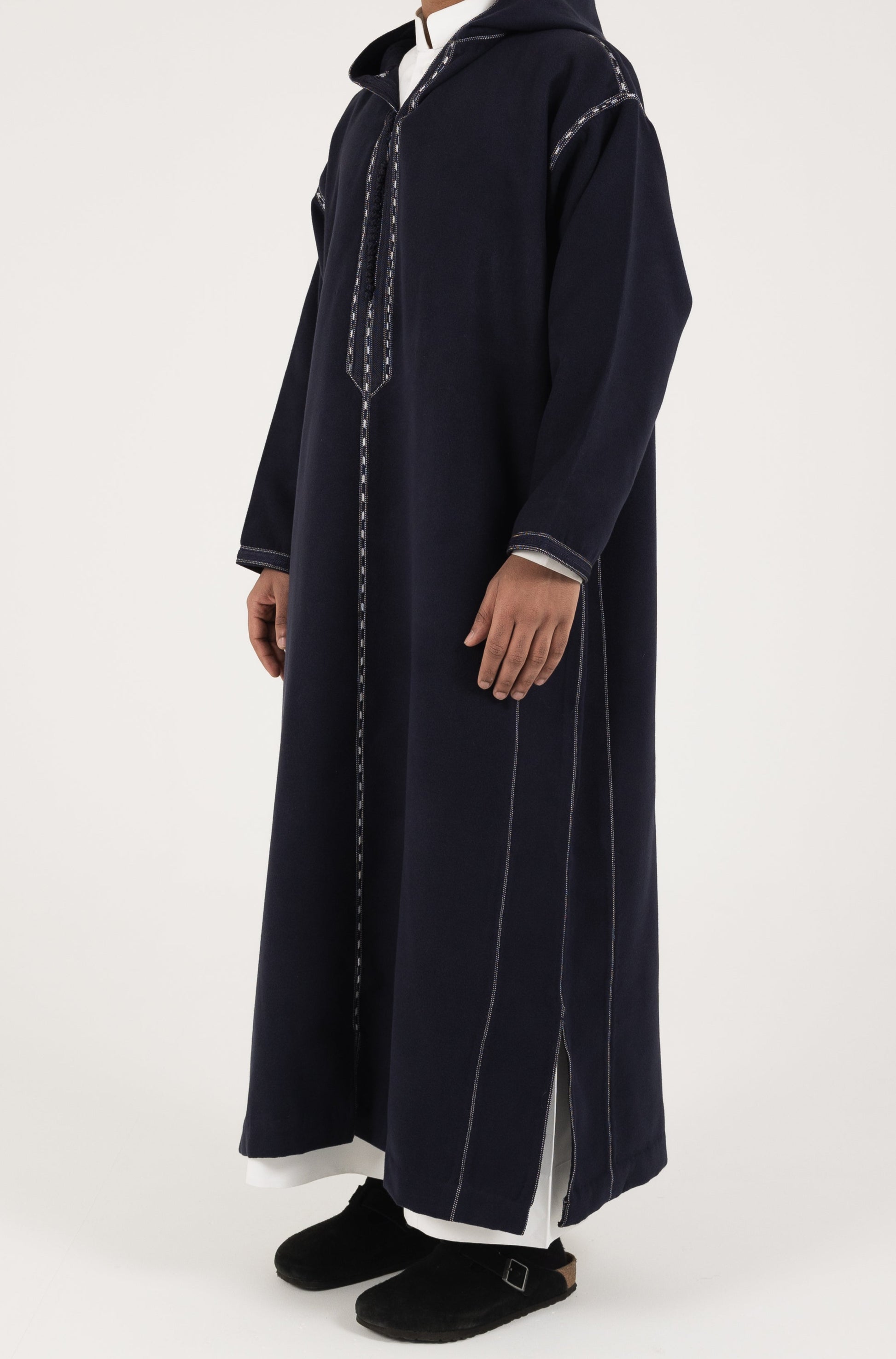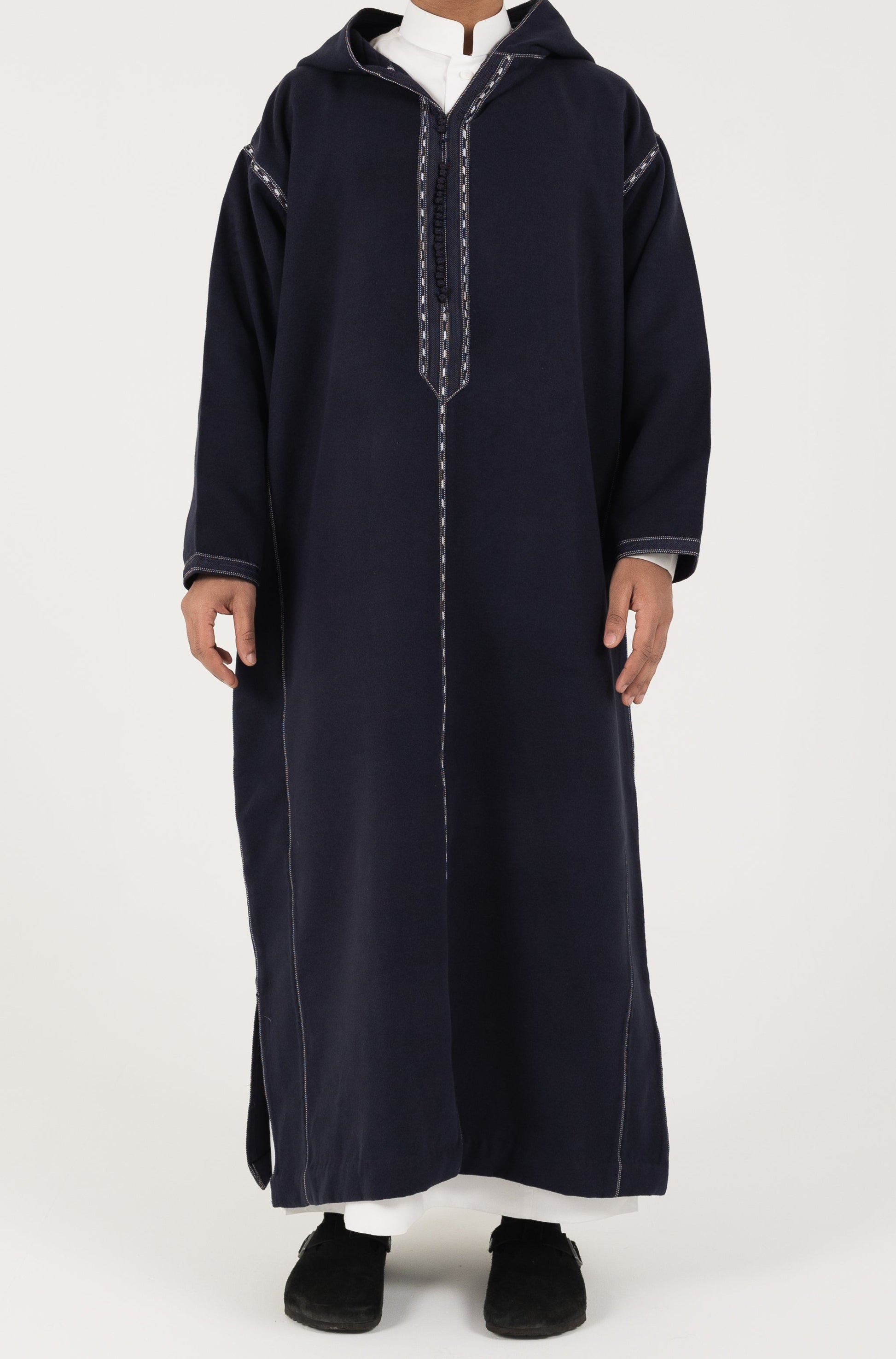This winter Moroccan thobe is made from thick, premium fabric for warmth and comfort, featuring a relaxed fit, traditional detailing, and elegant design ideal for cold weather.